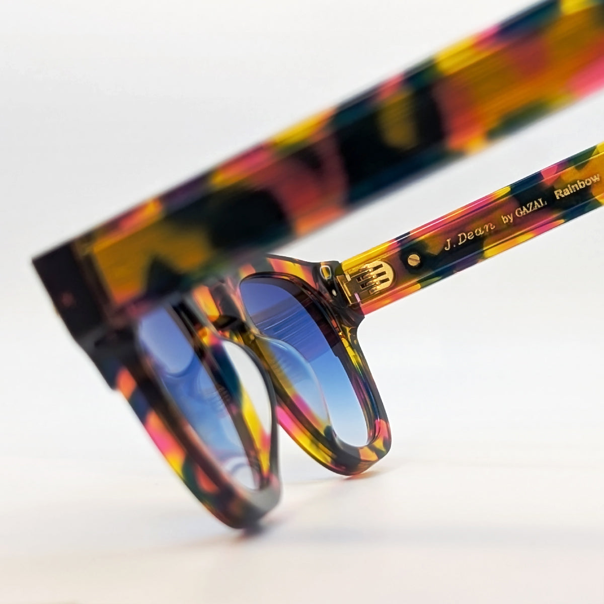 Disrupt the status quo with the J.DEAN square acetate spectacles by Gazal. Inspired by the charismatic style of vintage Hollywood cinema, J.Dean arrives onto the scene in five show-stopping new colorways, including the special-edition "Rainbow" pattern, which is limited to a production of less than 50 frames.