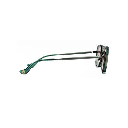 See the world with a fresh perspective with the LONDON square double bar sunglasses by Gazal. London is expertly handcrafted from titanium and features an acetate inner rim along with titanium temples, hinges, and screws. The temples are uniquely engraved for a textured finish, and an intricate flowing pattern is engraved along the bridge and rim lock.