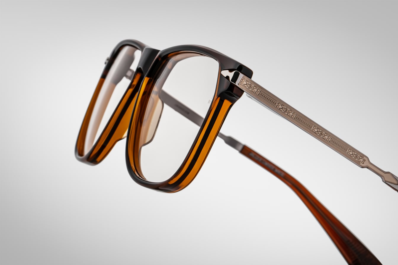 Jacques Marie Mage eyewear, where Japanese craftsmanship meets the rich cultural inspiration of American Indian heritage. Each Jacques Marie Mage frame is meticulously crafted in Japan, embodying a blend of bold design, exceptional materials, and cultural depth. The collection of Jacques Marie Mage sunglasses and eyeglasses features silhouettes that reflect timeless elegance and pay homage to both traditional artistry and innovative design.