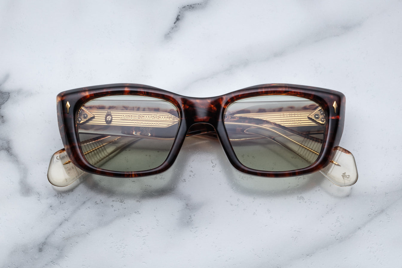 Jacques Marie Mage eyewear, where Japanese craftsmanship meets the rich cultural inspiration of American Indian heritage. Each Jacques Marie Mage frame is meticulously crafted in Japan, embodying a blend of bold design, exceptional materials, and cultural depth. The collection of Jacques Marie Mage sunglasses and eyeglasses features silhouettes that reflect timeless elegance and pay homage to both traditional artistry and innovative design.