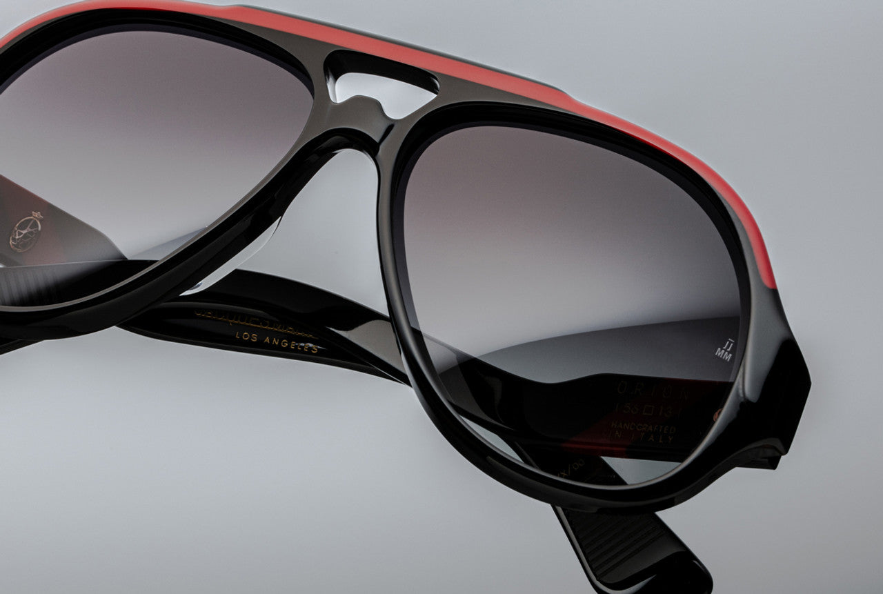 Discover the ORION, an elevated take on a classic silhouette pair of sunglasses features a bold monochromatic brow accent, flowing temples, and gold hardware. Italian made Jacques Marie Mage Sunglasses with mulicolored plastics.