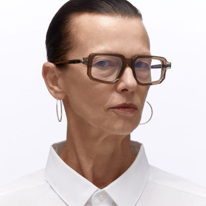 Dreamed in Berlin and handcrafted in Italy, each KUBORAUM frame is conceived as a mask — a sculptural extension of the wearer's personality that celebrates individuality and self-expression. Known for their avant-garde designs, bold silhouettes, and meticulous craftsmanship, Kuboraum pieces serve as symbols of confidence, play, and transformation.