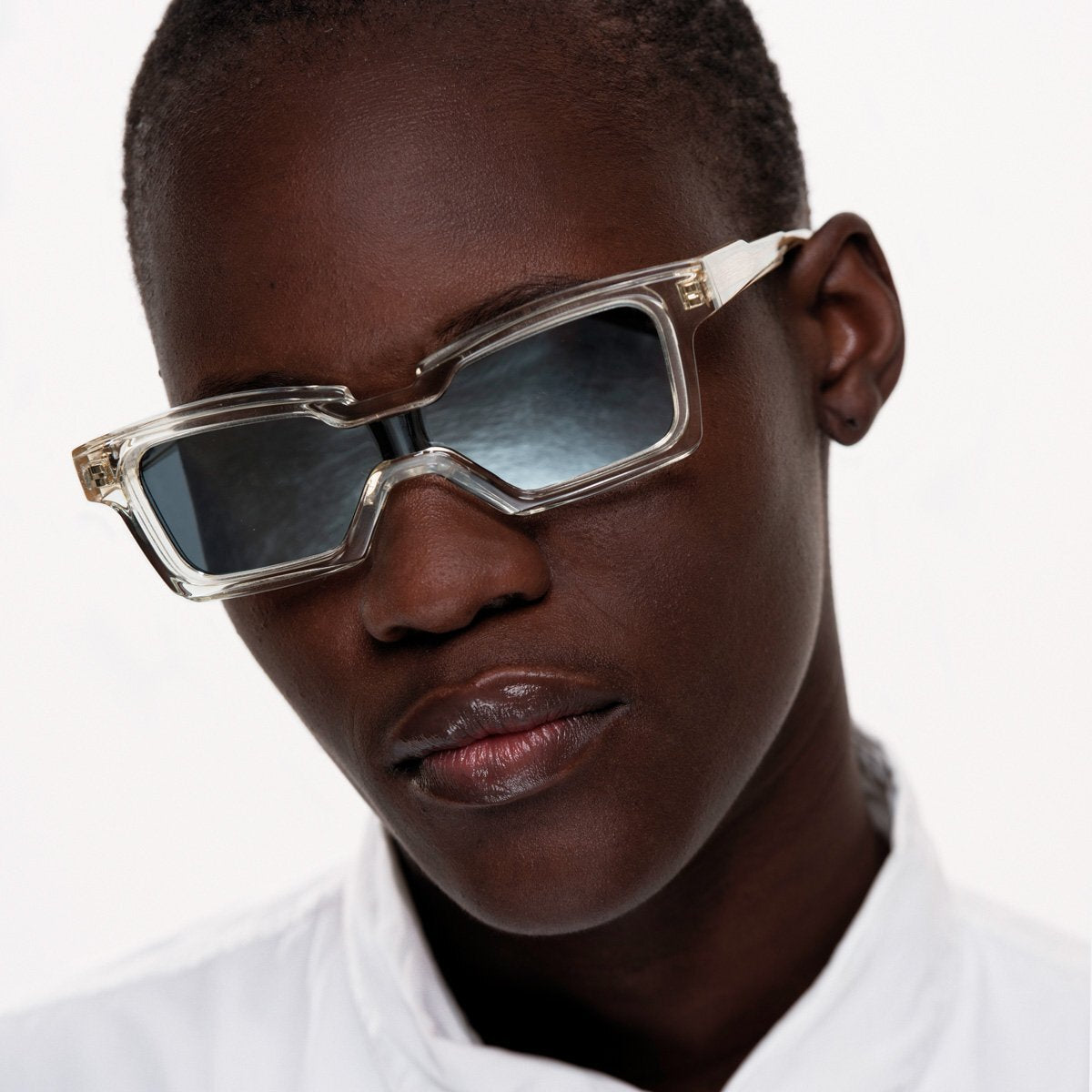 Dreamed in Berlin and handcrafted in Italy, each KUBORAUM frame is conceived as a mask — a sculptural extension of the wearer's personality that celebrates individuality and self-expression. Known for their avant-garde designs, bold silhouettes, and meticulous craftsmanship, Kuboraum pieces serve as symbols of confidence, play, and transformation.